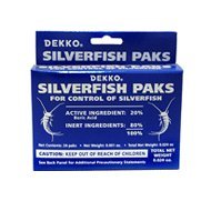 Dekko packs are an economic and easy way to control silverfish. Silverfish simply eat through the pack and ingest the poison inside. Place two to three packs in each infested area you are trying to control. Silverfish may take several days to a few weeks to control, depending on conditions. One box contains 24 paks.The silverfish simple eat through the pak which is a toxicant for the silverfish.Place two to three paks in each infested area.Place in closets, drawers, bookcases, in basement and dark hidden places. Also in areas where silverfish inhabit, under house and in attic if possbible.When DEKKO Silverfish Paks are used as the only treatment, control may not be obtained from three days to four weeks, depending upon conditions.Repeat treatment as necessary to affect and maintain control. Replace every three to four months from date of purchase.Available at Amazon Check Price Now!